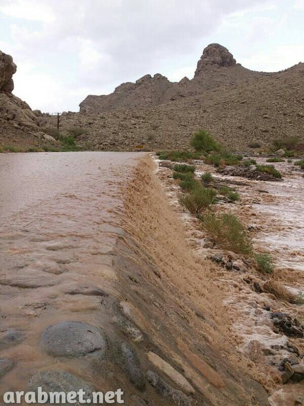 انبا عن جريان قوي للاوديه طريق الوقبه