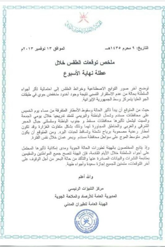 رد: متابعة : احتمال تأثر شمال السلطنة والخليج العربي بحالة عدم استقرار 13 نوفمبر 2013 والأيام القادمة