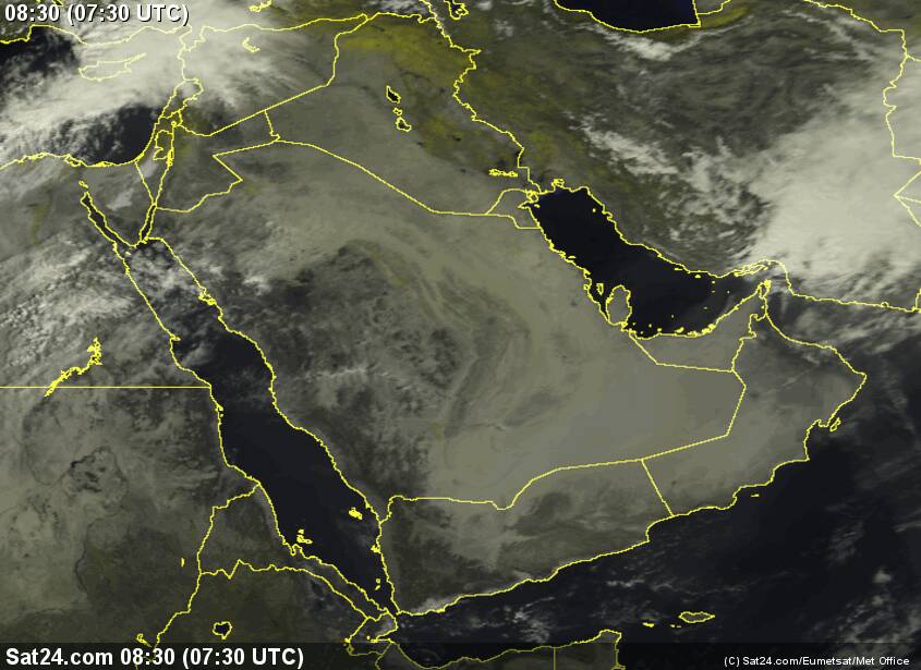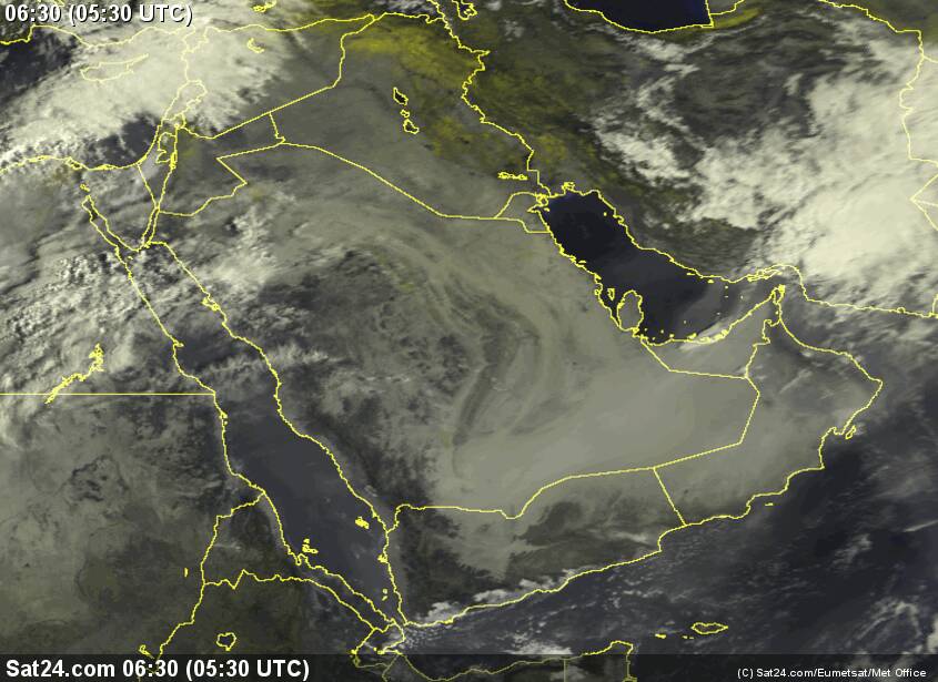 التكاثف للسحب واضح في الخليج العربي وأمطار رعدية في جنوب ايران من خلال الاقمار
