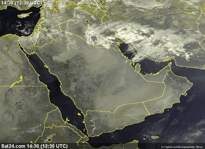 الأجواء شبة مستقرة في أجواء السلطنة والإمارات بشكل عام هنالك توقعات بموجة ضعيفة تتأثر به الكويت وشمال شرق المملكة غدا المساء مع توقعات أمطار متفرقة تكون رعدية أحيانا وبعدها سوف تمتد مع ساعات الليل الأخير والصباح الباكر حيث من المتوقع أن تتحول الاجواء إلى غائمة جزئيا على شمال شرق الامارات ومحافظات مسندم والبريمي وشمال الباطنة بسحب عالية تتخللها سحب متوسطة أحيانا.