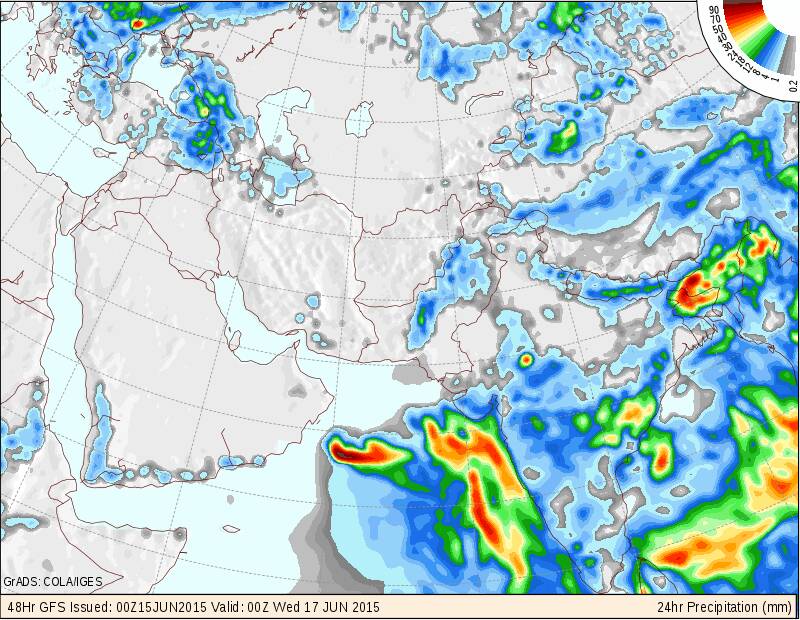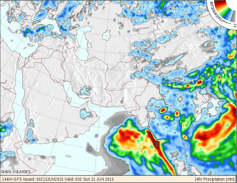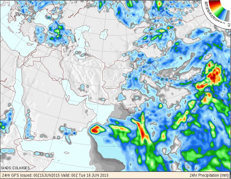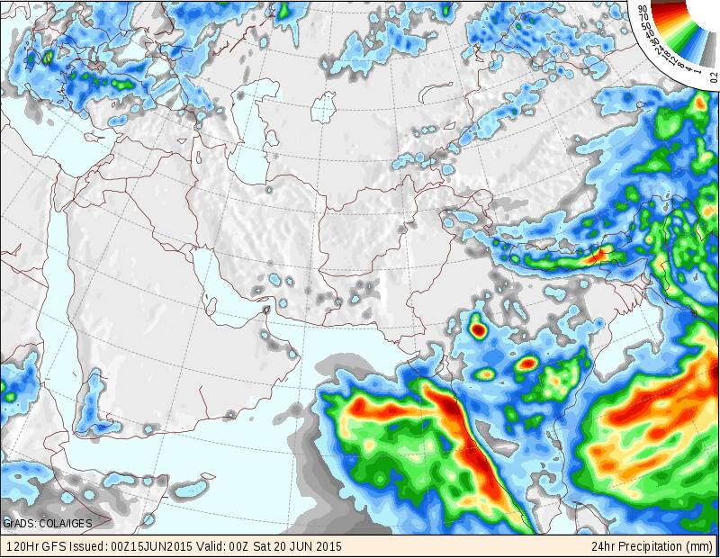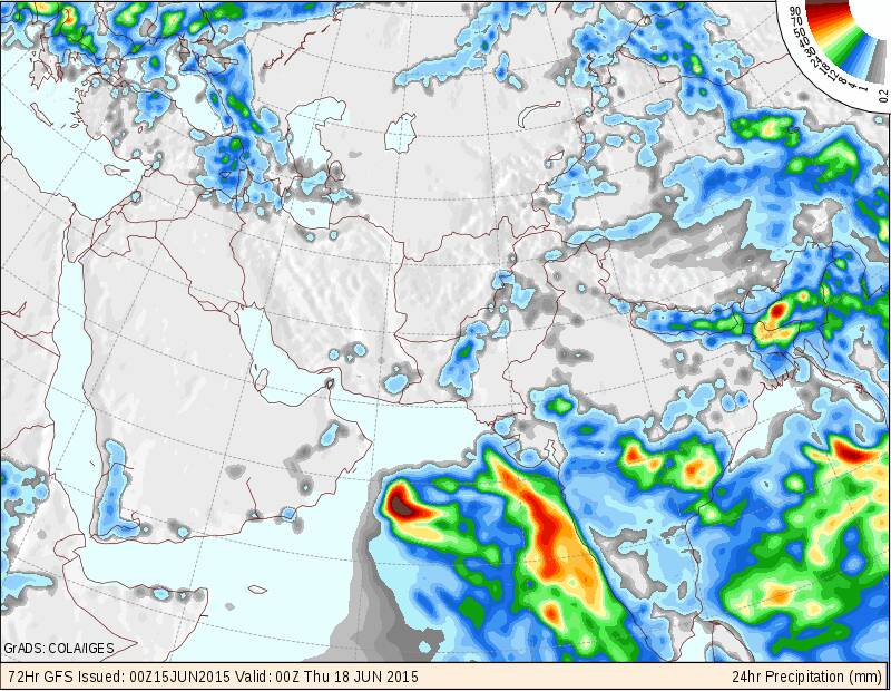 متابعة حالة الطقس على السلطنة والخليج العربي 15/6/2015 والأيام القادمة