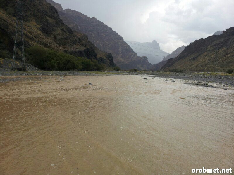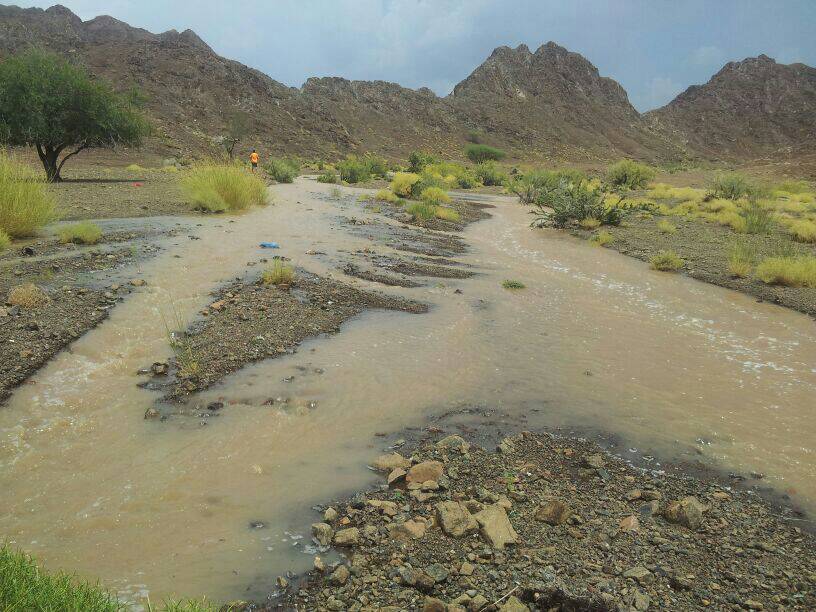 بداية هطول الأمطار على وادي المعيدن ببركة الموز