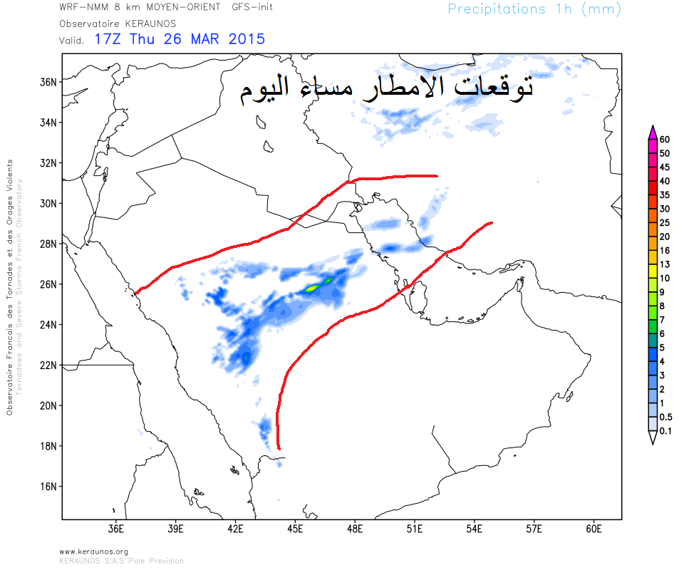 توقعات الامطار من الاروبي مساء اليوم والله اعلم
