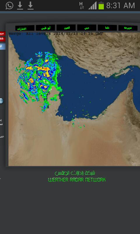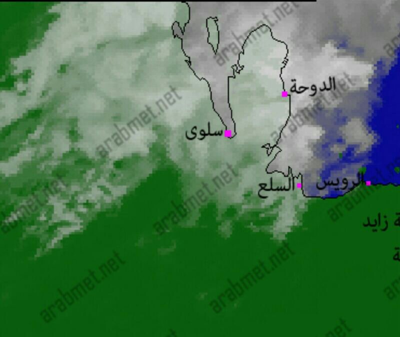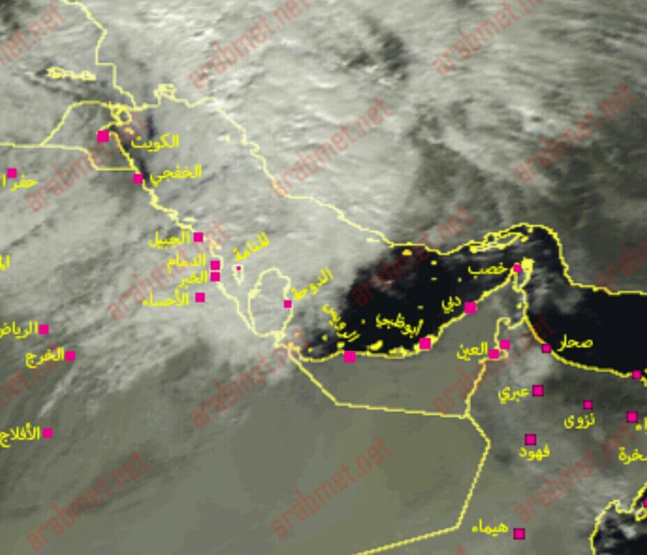 كما نلاحظ من صور الاقمار تأثر دول الخليج بمنخفض جوي وأمطار متفاوتة الغزارة من خفيفة الى متوسطة وأحيانا رعدية غزيرة في الكويت