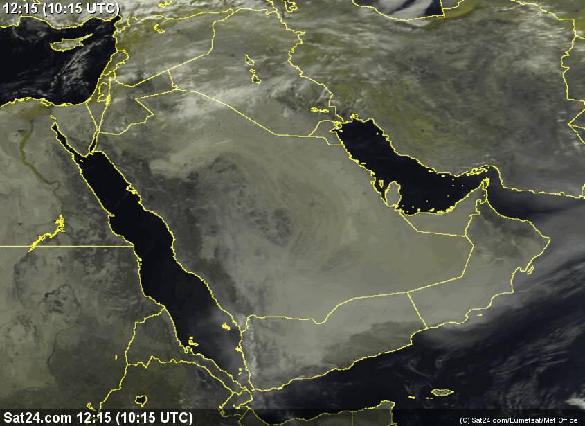 انحسار تدريجي للغبار من أجواء #الإمارات و #عمان لاحقا واستمرار تواجدها ب #اليمن وجنوب #السعودية