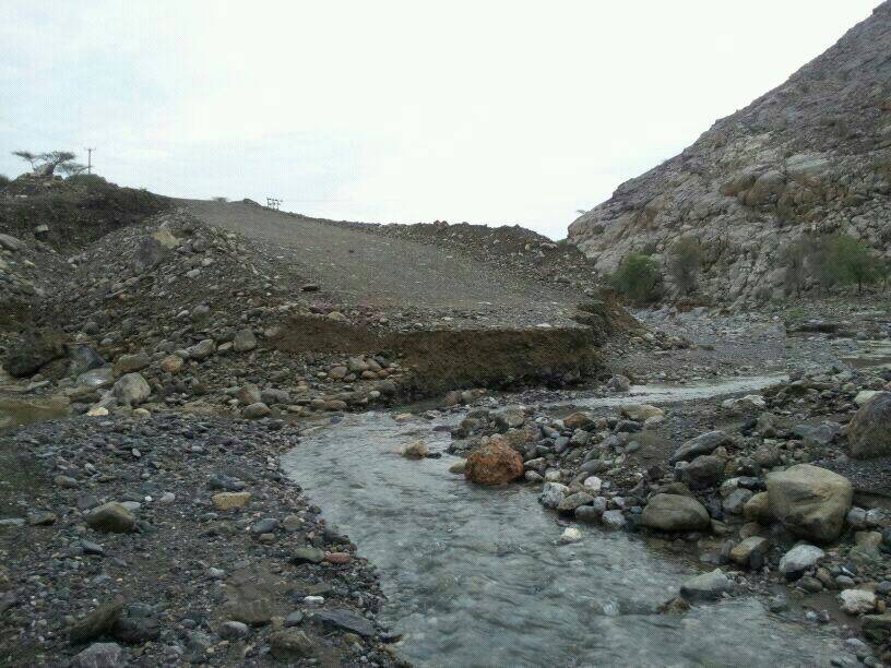 جريان وادي النخر في ولاية الحمراء إلى بلدة الحجر.