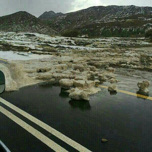 البرد يضرب ابها في السعودية بقوة ويغلق الطرق