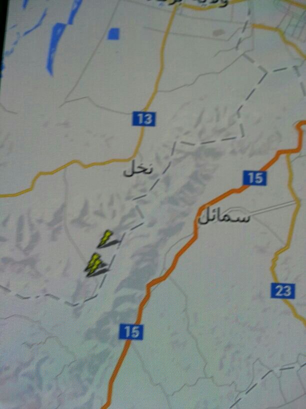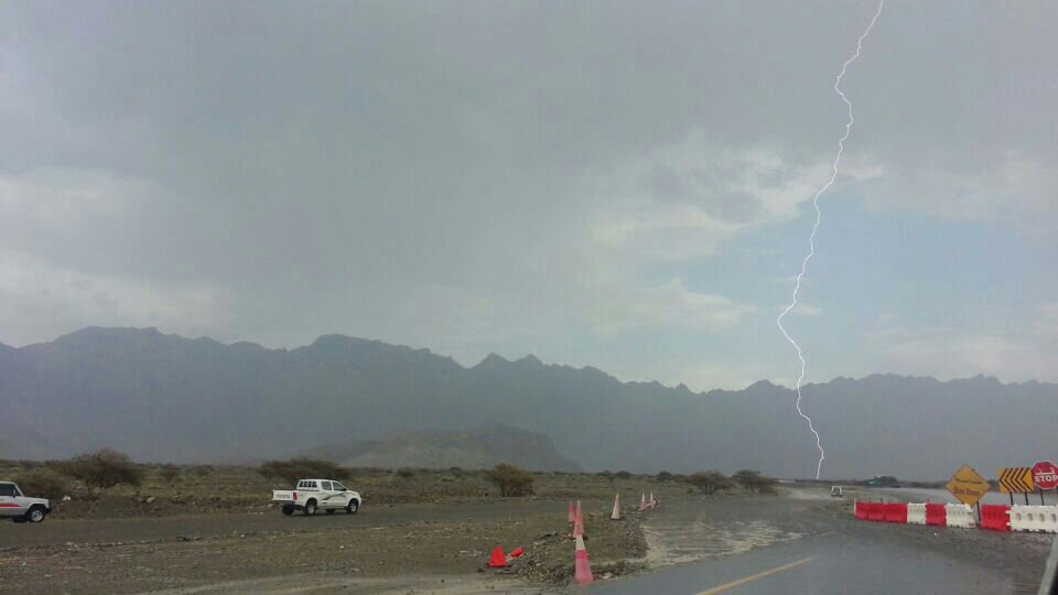 صورة لصاعقه بوادي مستل بنخل وأمطار مستمره متوسطه