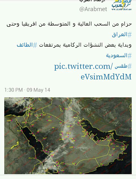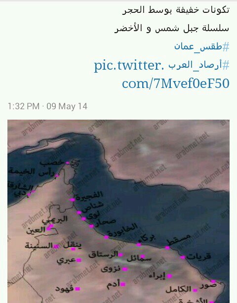 رد: متابعة : أحوال الطقس وحالة عدم الاستقرار في السلطنة ودول الخليج والوطن العربي خلال الفترة من 1 - 10 مايـو 2014م