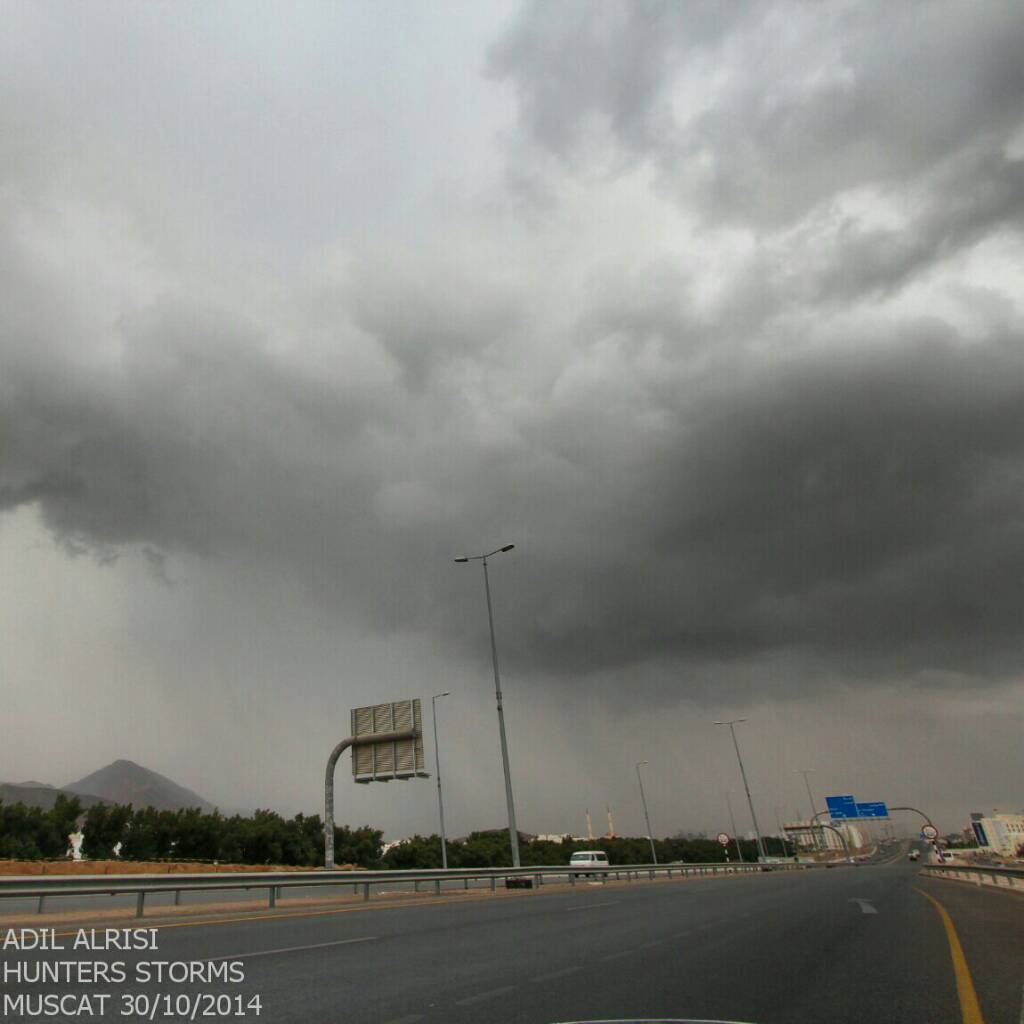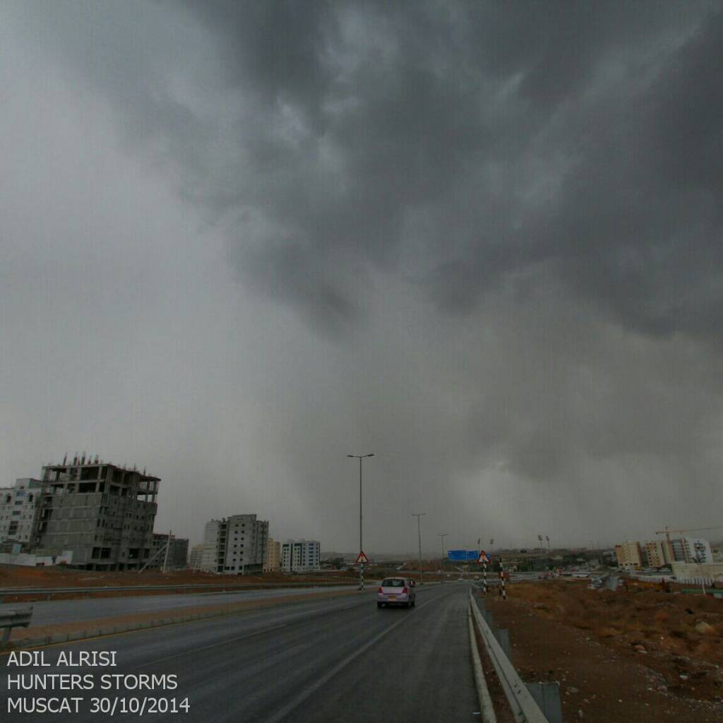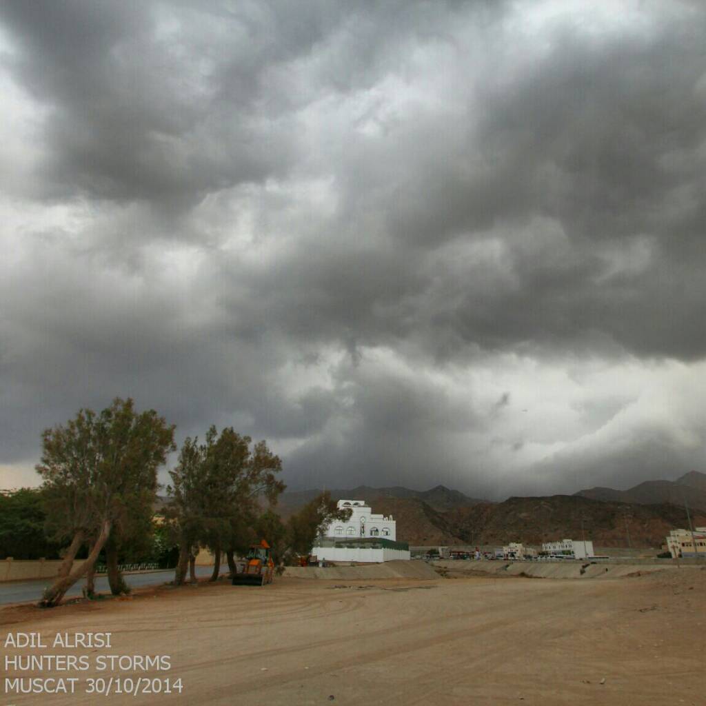 نلاحظ الأخدود يجذب كتل رطبه ممطره من الاعصار البعيد وهي قد سببت أمطار غزيرة على اجزاء من محافظة مسقط ،يتبع