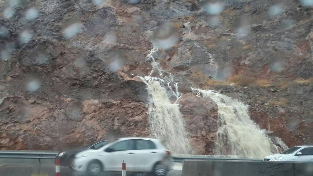 من الأمطار الغزيرة على جبال بوشر العامرات مع إنحدار الشلالات من أعالي الجبال