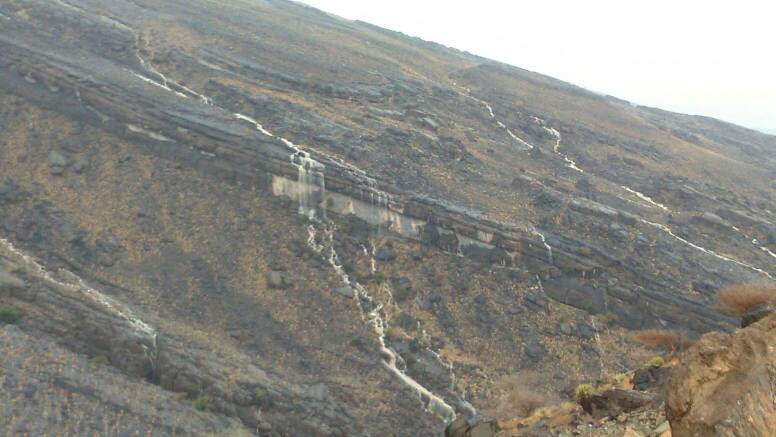 امطار مستمره وشلالات تنهمر ما شاء اللــﮧ وادي بني خروص- العوابــــــــي