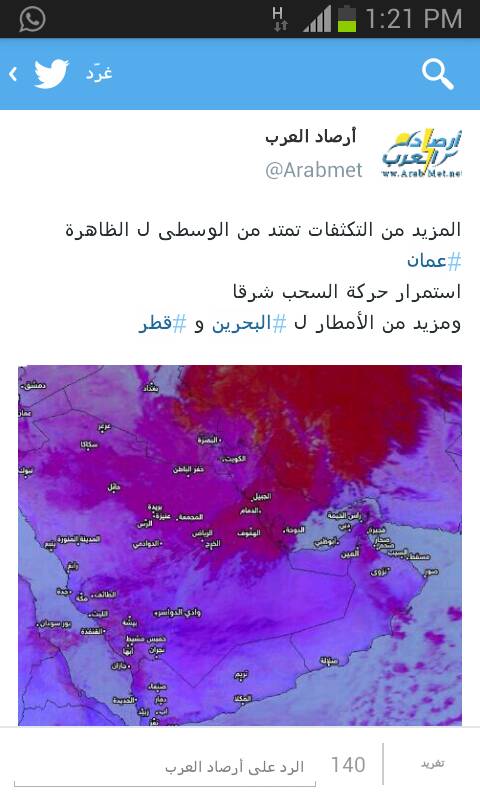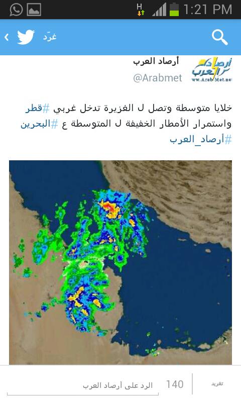 رادار قطر..اغلبها خفيفة مع خلايا تصل ل متوسطة ع مساحة محدودة شمال قطر