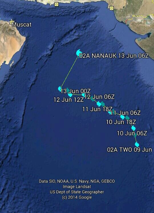 رد: متابعة أخر تطورات العاصفة المدارية نانوك nanauk ببحر العرب 2014م