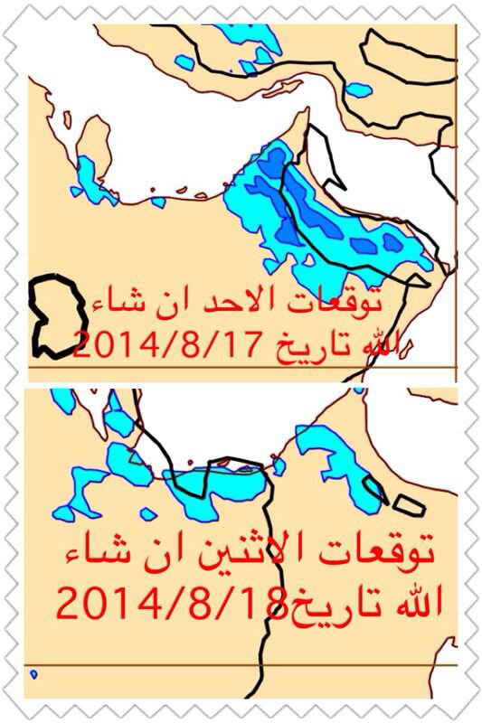 نشاط سحب وارد خلال هذه الساعات على جبال الحجر خاصه ( شمال الحجر الغربي ) و الصحاري مع توقعات بتكاثف سحب على سواحل الامارات خاصه ( سواحل دبي ) قد تؤدي الى امطار متفرقه كذالك قد نشهد بروق جهه الصحاري و الله أعلم