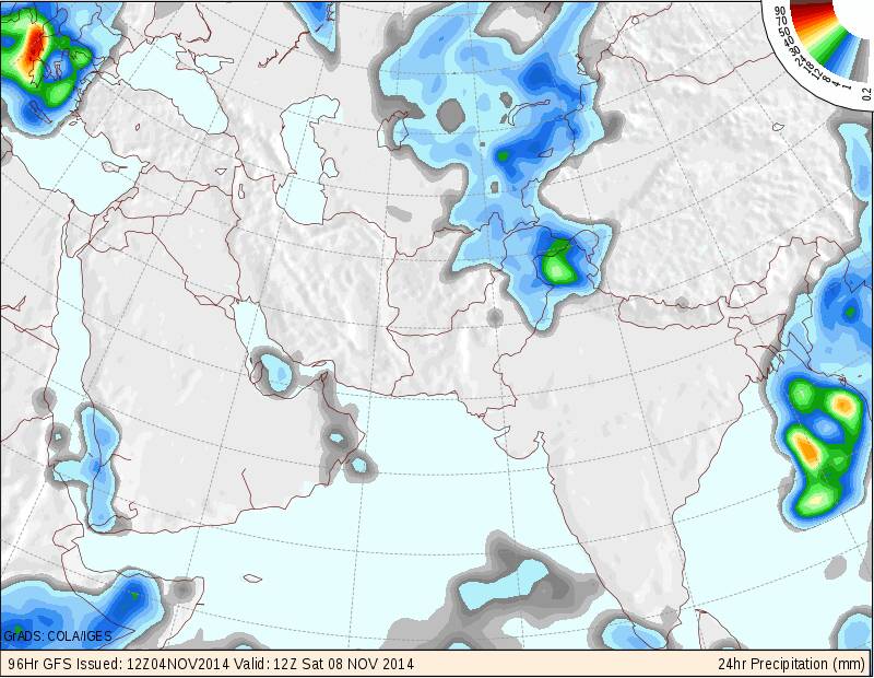 توقعات الأمطار من الجي أف أس لستت أيام قادمة
