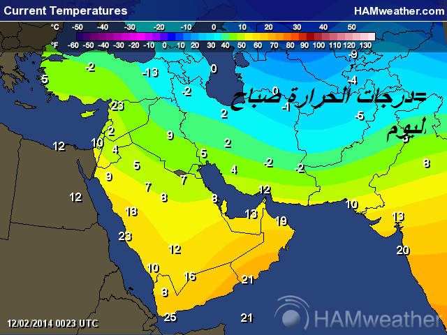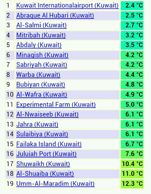 درجات الحرارة الصغرى المسجلة صباح اليوم بالكويت