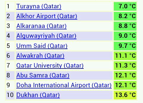 درجات الحرارة الصغرى المسجلة صباح اليوم بقطر