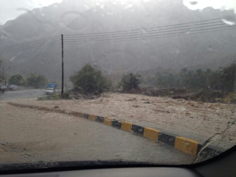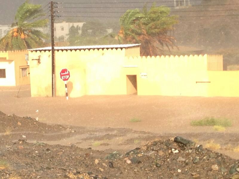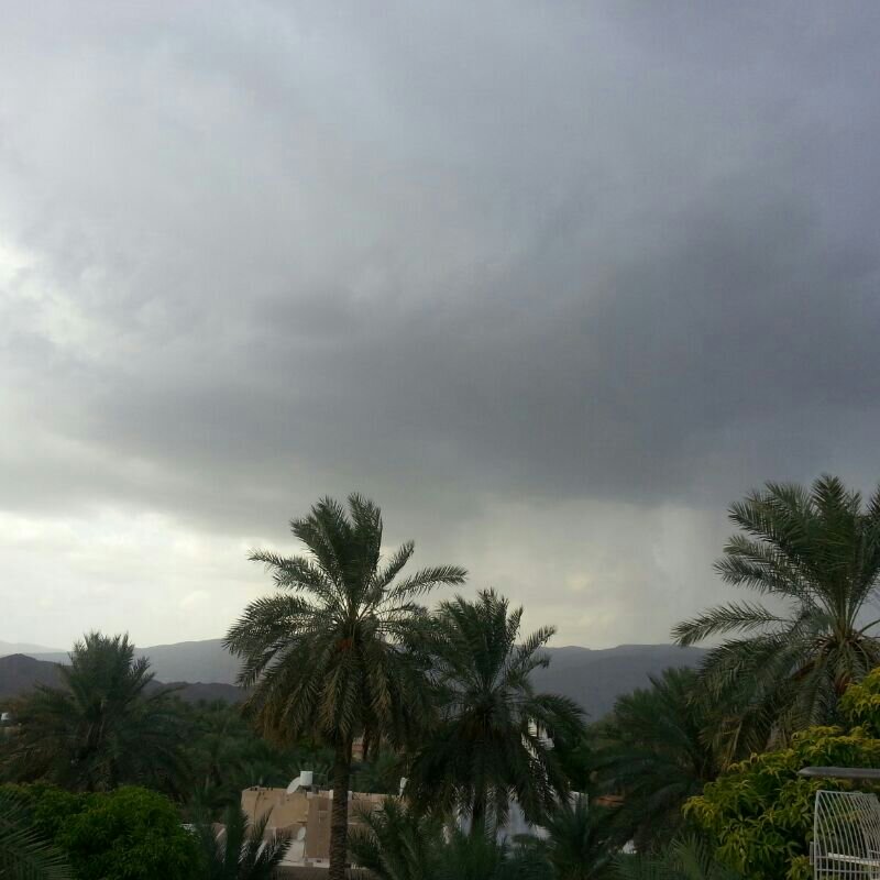 الحمدلله تعرضنا اليوم في وﻵية سمائل بتحديد وادي بني رواحه لعاصفه قوية جدا مثاليه قليل ما تتكرر