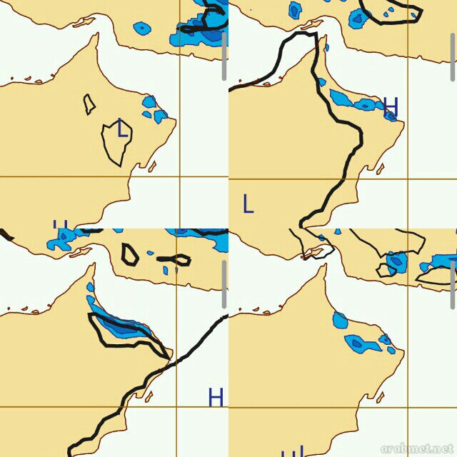 توقعات النموذج الأوربي بإستمرار التكونات الماطرة على جبال الحجر خلال الأربع أيام القادمة