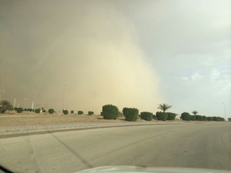عاصفة شديدة صواعق واضحة الان وغبار قبل مركز الجيش بالسنينة