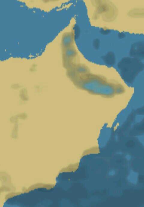 الصورة الجوية توضح نشاط التكونات شمال الحجر الغربي وسحب منخفضة متفرقة بسواحل ظفار