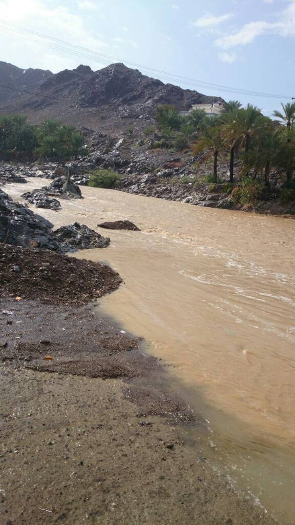الامارات : امطار غزيرة مع جريان الشعاب في ام غافة ( مدينة العين ) تصوير بلال الظاهري #مركز_العاصفة