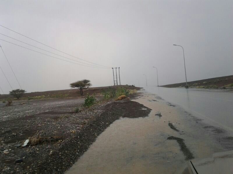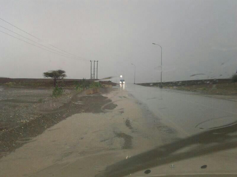 أمطار الخير اليوم تصويري طريق الظفرة-الجوفا-عز بولاية القابل
