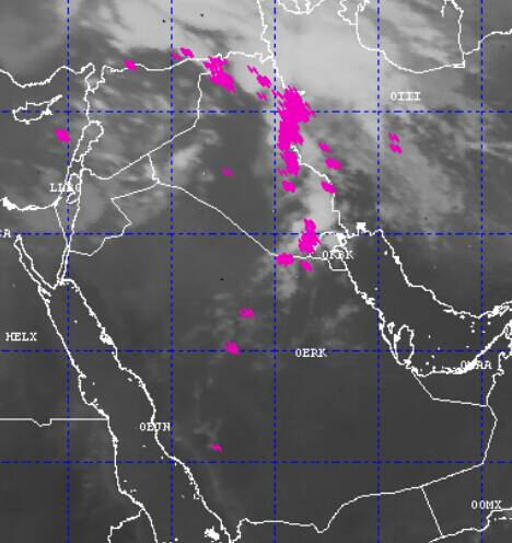 وسجب ركامية ماطرة ع الحدود بين السعودية والكويت والعراق وتمتد ل دواخل العراق وصولا لإيران