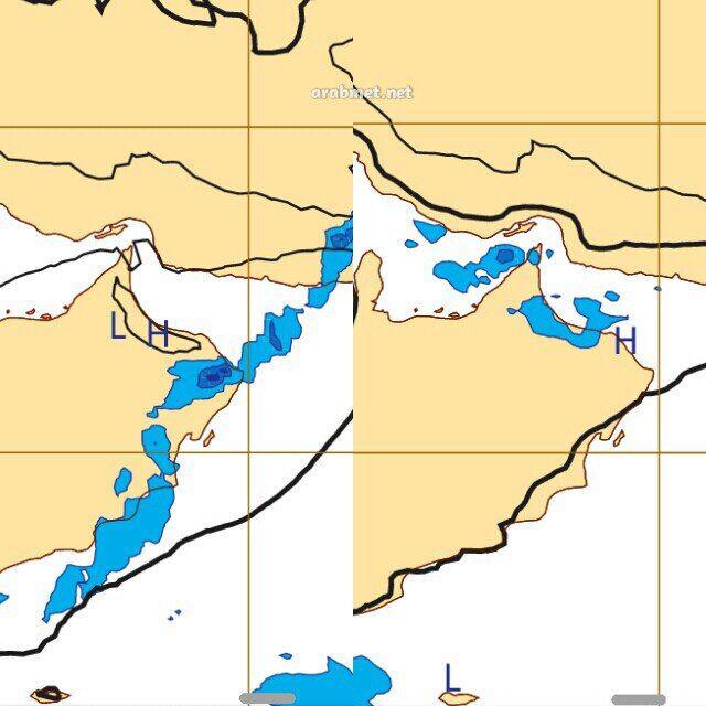 موجة أمطار متوقعة على معظم محافظات شمال السلطنة والإمارات تبدأ تدريجيا من مساء الجمعه لغاية يوم الأحد والله أعلم