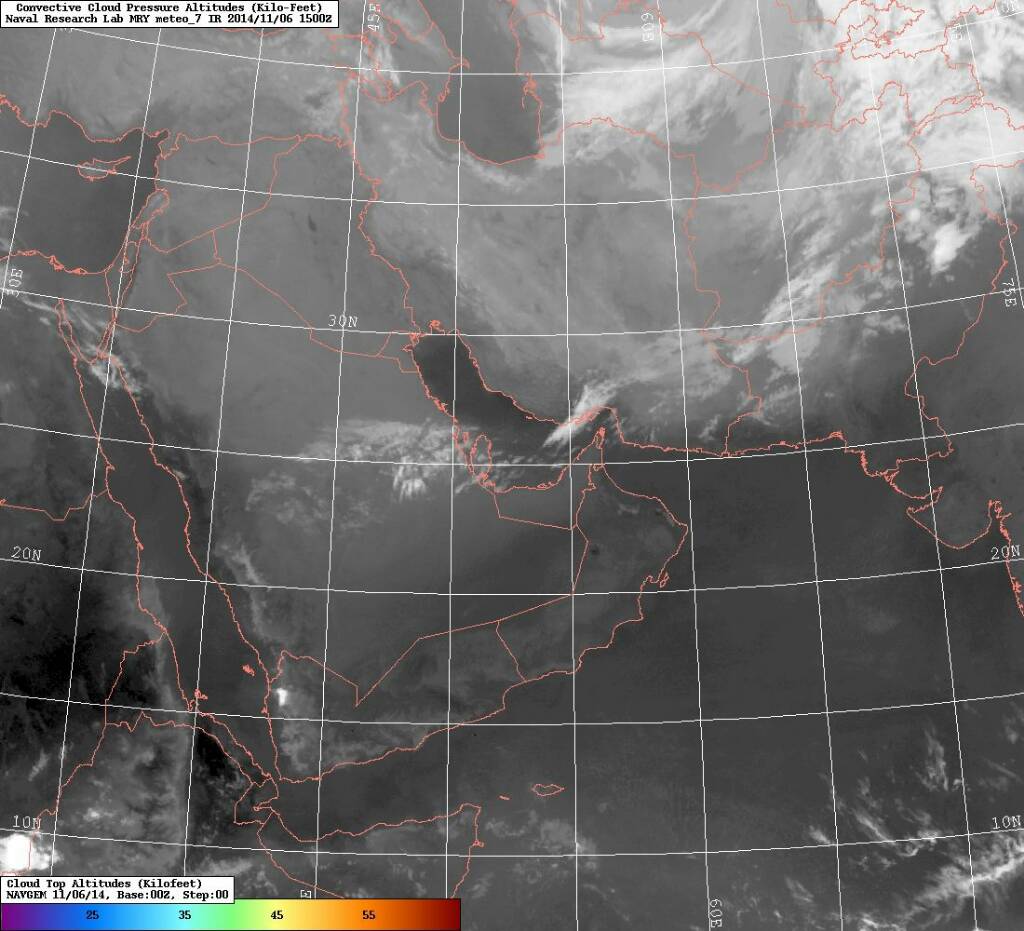 التوقعات تشير الى انتشار التكونات صباح الغد في بحر عمان مع نشاط التكونات على الحزام الاول لجبال الحجر وقت الظهيرة مع اقتراب فترة مساء الغد تزداد كمية السحب على المناطق المطله على بحر عمان و بداية ذروة التأثير