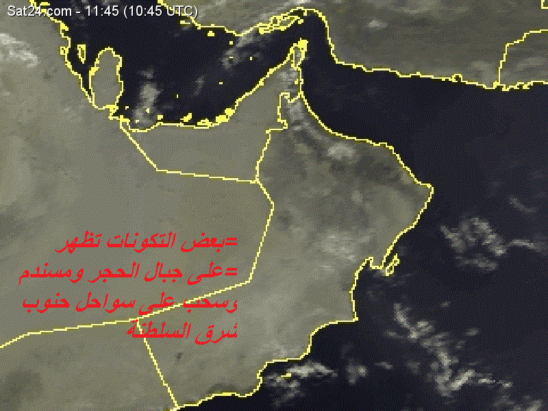 عدا احتمالية الضباب على بعض المناطق من السلطنة .. واحتمالية انتشار السحب المنخفضة . الله اعلم