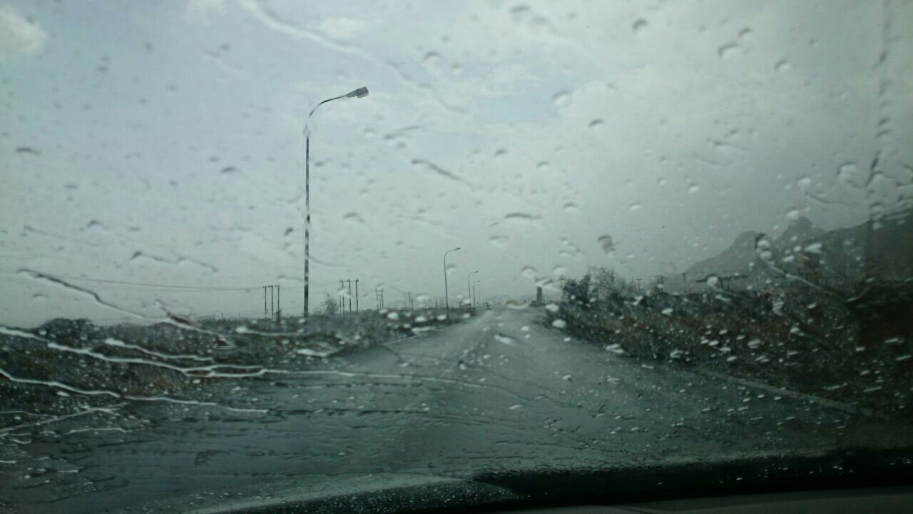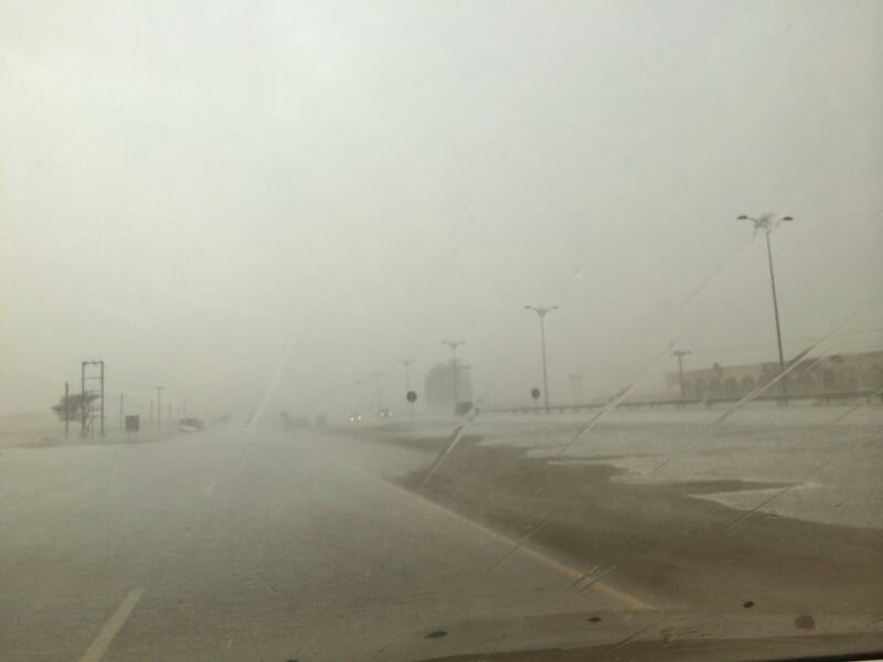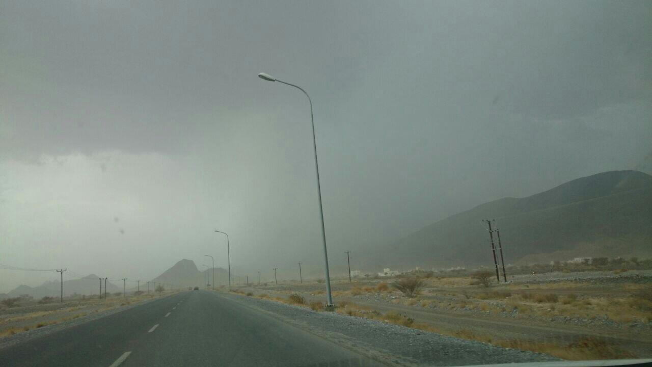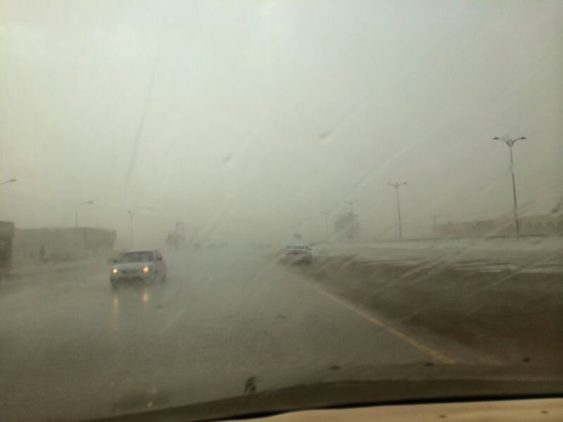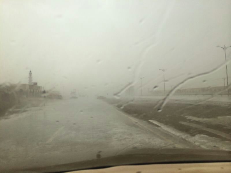 أمطار غزيرة مع برد ورياح نشطة في المنفذ الحدودي حفيت .