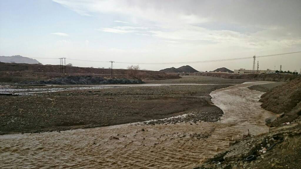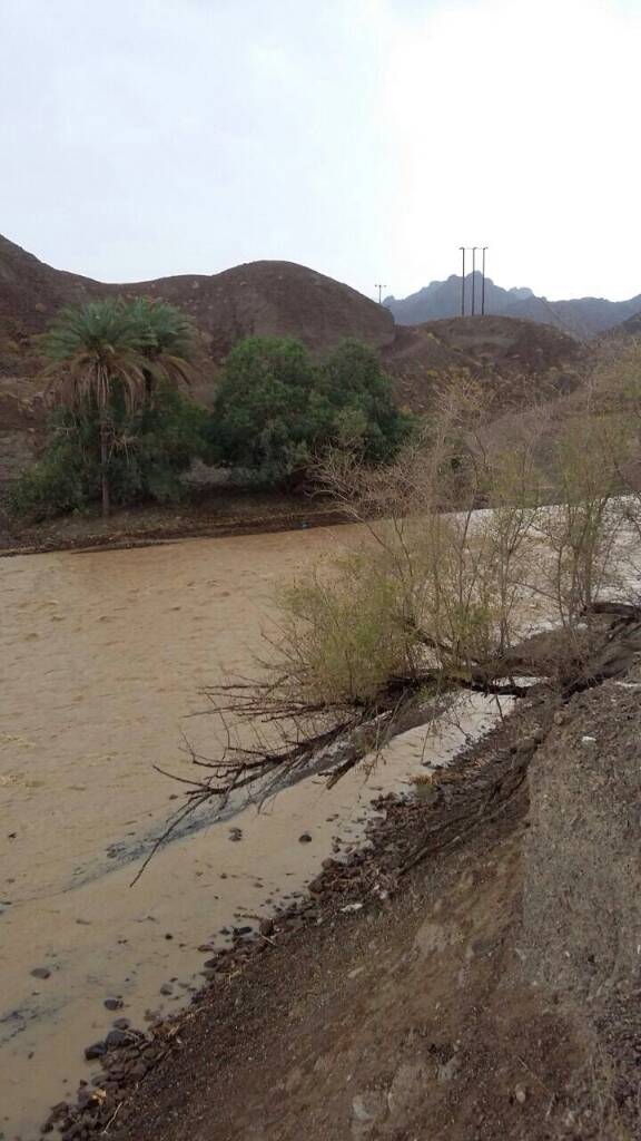 صيع الامطار بين الخفيفه والمتوسطه والغزيره اسفل من القريه مع جريان الشعاب بشكل خفيف ومتوسط .../ينقل