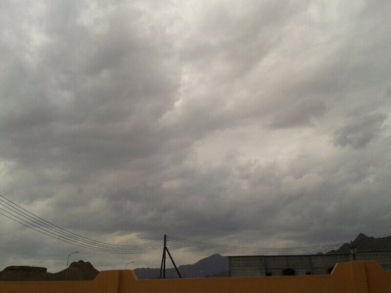 السماء ملبده بالغيوم تماما اﻵن في منطقة عاهن وننتظر اﻷمطار بإذن الله