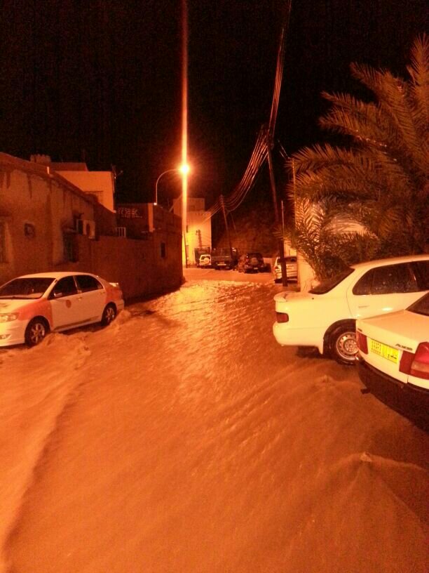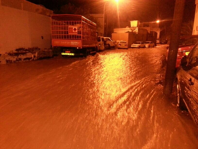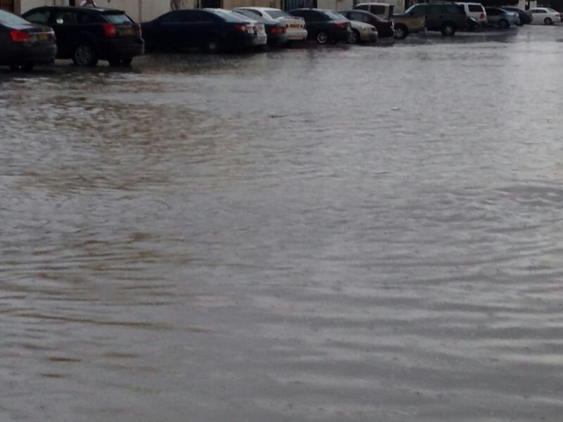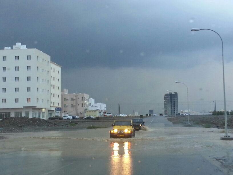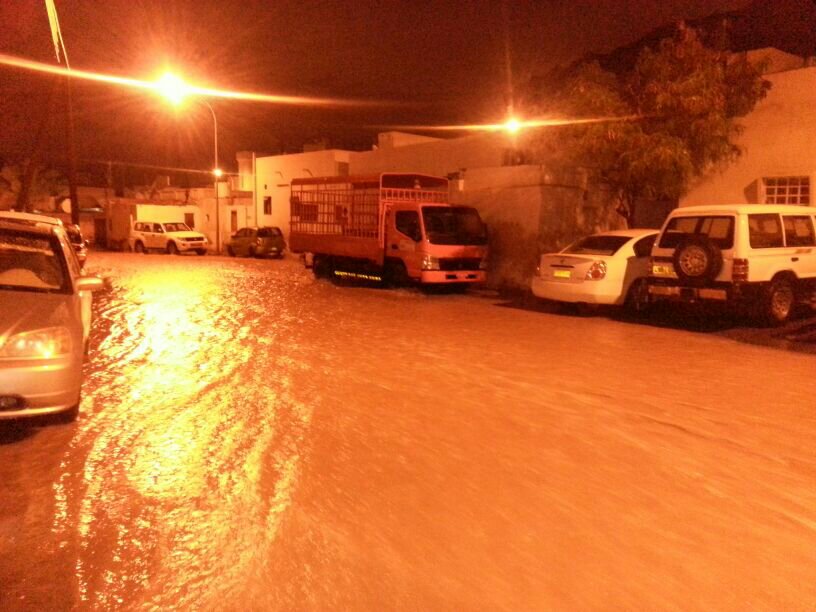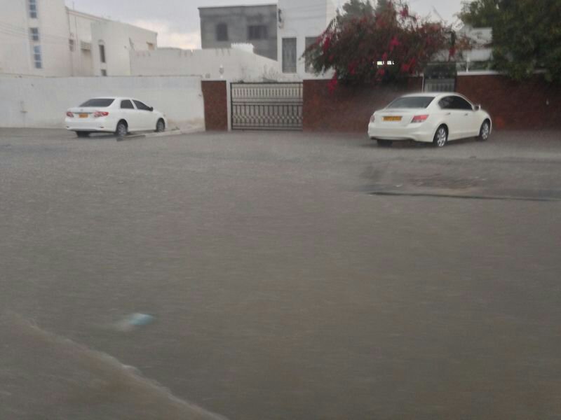 صوره معبره عن التجمعات المائيه الناتجه عن الامطار الغزيره التي شهدتها منطقة الخوض بالسيب