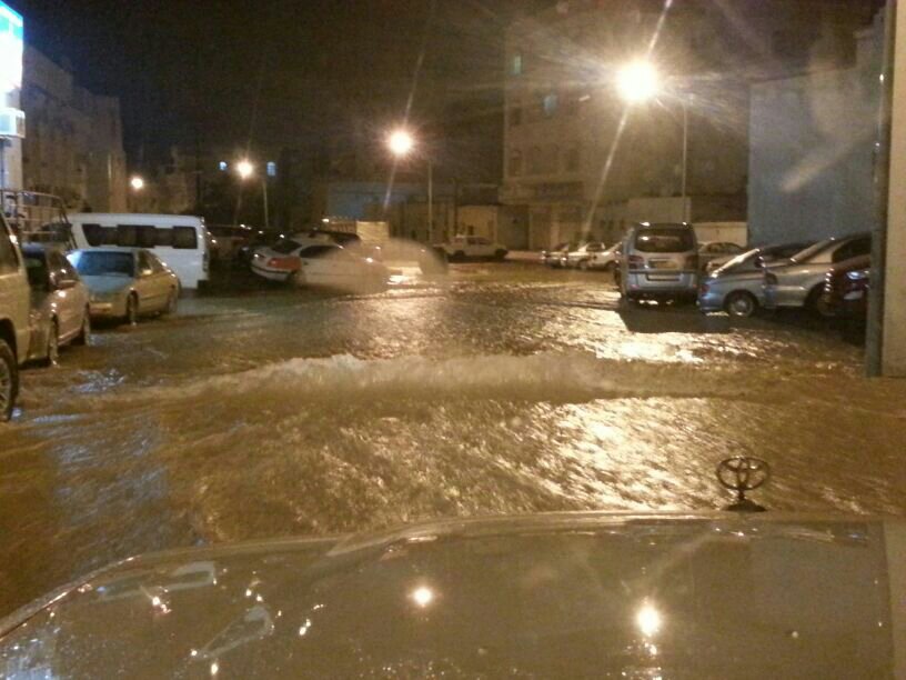 الامطار مستمره بخصب مع رعد وبرق ولمده ساعه متواصله من الان