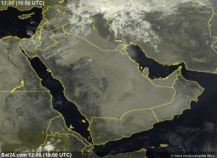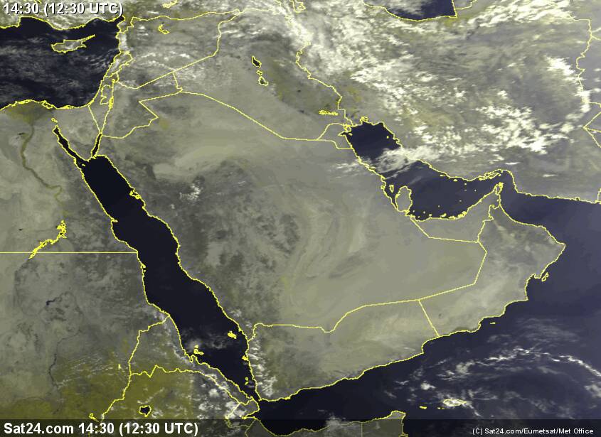 الصورة الجوية الحالية توضح إستقرار على اجواء الخليج وبلاد الشام