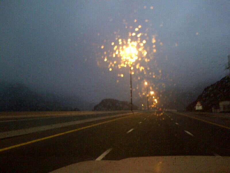 أمطار خفيفه والجو غائم كليا بشارع الشيخ خليفة بالفجيره..