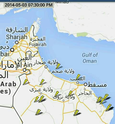رعد وبرق كثيف جنوب وشرق الجبل الأخضر الآن " اللهم برحمتك يا رب " الوضع رهيب الآن رعاد " 7:29 دقيقه &سفير الطقس&