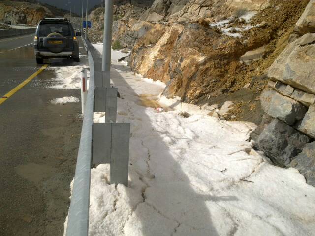 امطار غزيرره وبرررد يتساقط وشلالات تجري بالعوابي