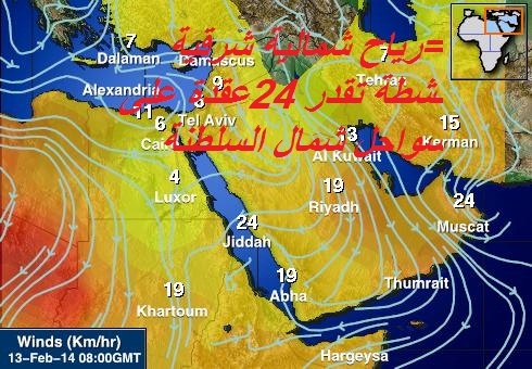 رد: متابعة أحوال الطقس على السلطنة ودول الخليج والوطن العربي خلال أول شهر فبراير من العام 2014م