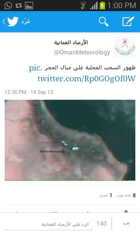 رد: متابعة : أحوال الطقس في السلطنــة والخليج العربــي تاريخ 15 سبتمــبر 2013م والأيام القادمة ...