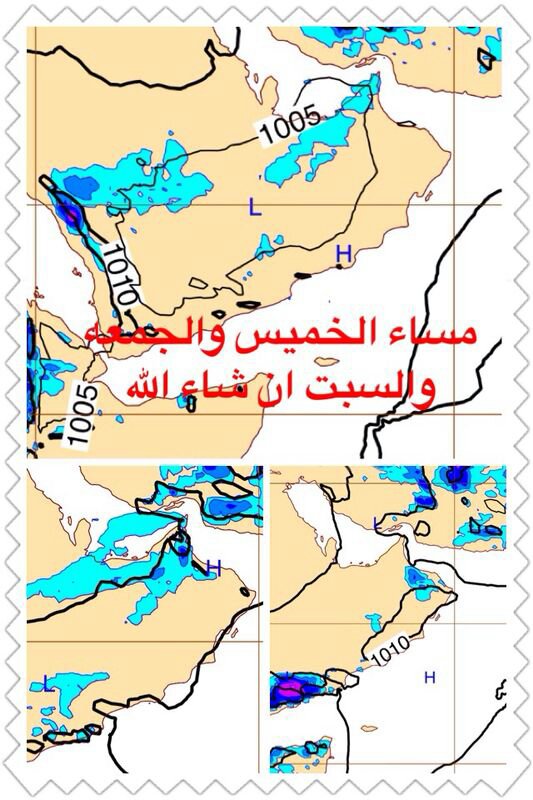 بإذن الله خلال 7 أيام : فرص الأمطار تتجدد على أجزاء من جنوب غرب المملكة وأجزاء من الإمارات وسلطنة عمان واليمن ثم تبدأ على غرب وشمال المملكة.