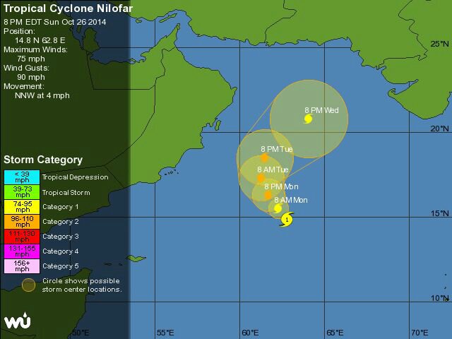 رد: متابعة العاصفة المدارية (نيلوفر Nilofar ) في بحر العرب 22/10/2014