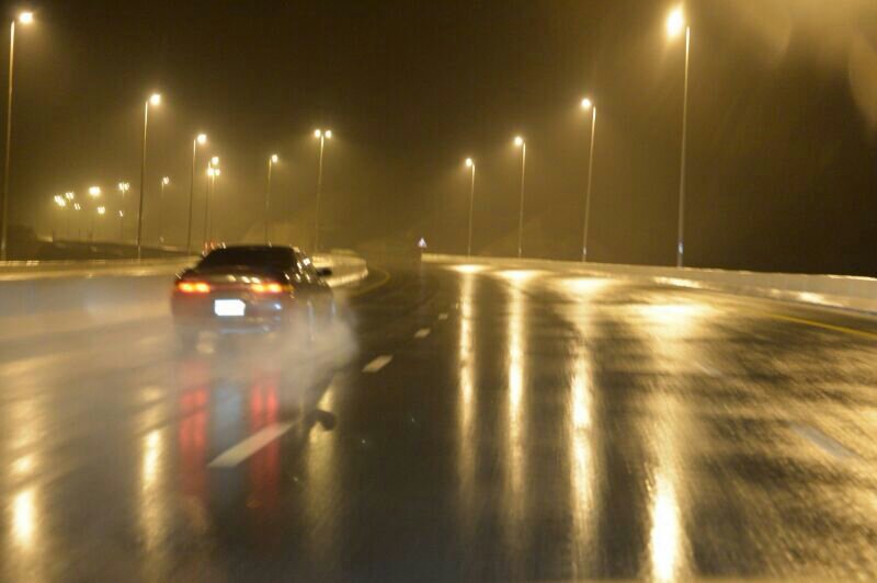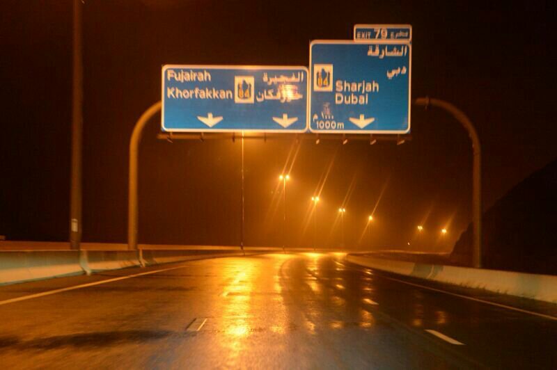 أمطار شارع خليفة بالفجيرة صباح اليوم #الإمارات #الفجيرة