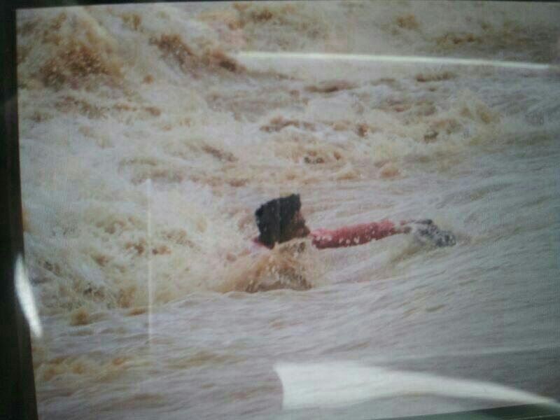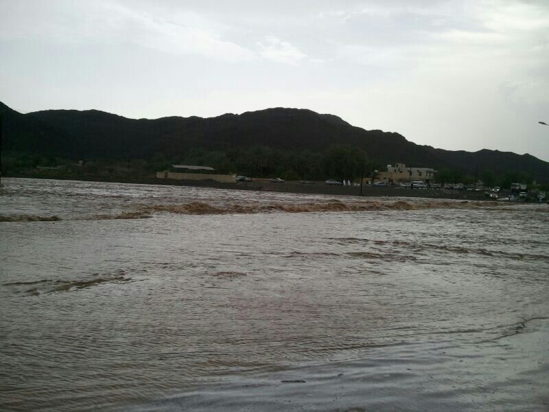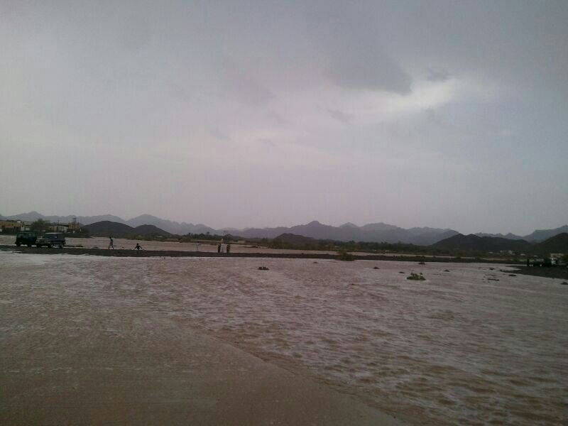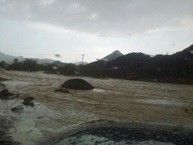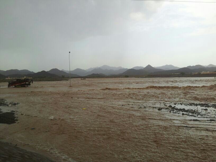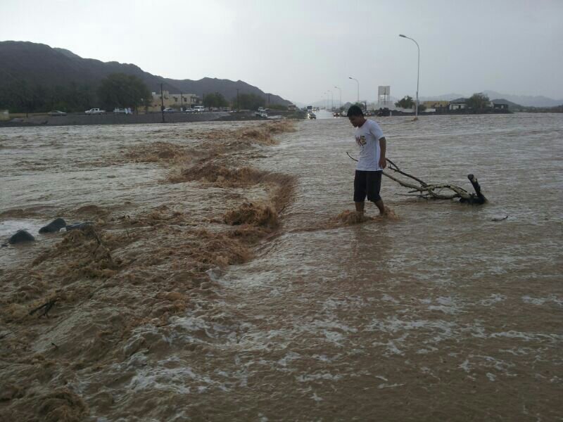 صورة العامل اﻵسيوي الذي جرفه الوادي في محاولته للعبور والحمد لله خرج