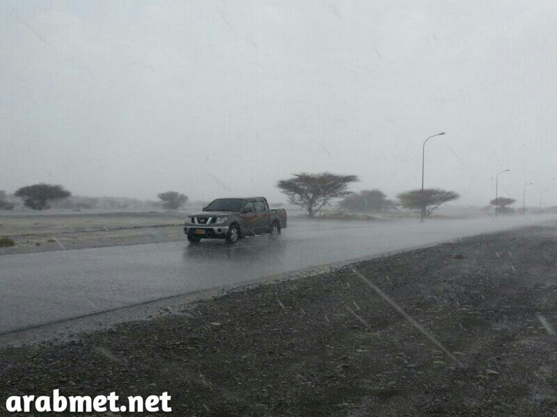 أمطار متوسطه إلى غزيره طريق إزكي منح منطقة المحيول