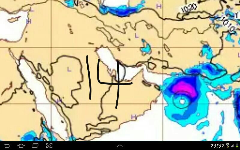 توقعات اليوم ، ظهور السحب المحلية على الحجرين ، توقعات الامطار متفاوتة قد تكون رعدية متفرقة من الحجرين ..... ربي اعلم