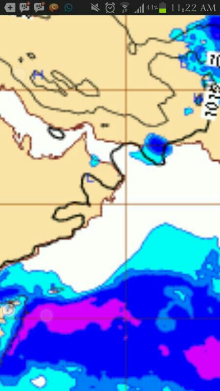 تخرج الموجة من الكويت الى ايران .وبداية دخول موجة صغيرة مساء اليوم موضح باللون الأزرق والله اعلم